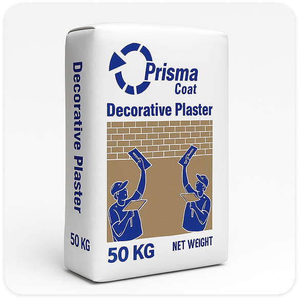 Prisma Coat Decorative Plaster is a high-quality, ready-to-use cementitious plaster designed for interior and exterior wall finishing. It provides a smooth, durable, and decorative surface with excellent adhesion and workability. Formulated with selected mineral fillers, polymers, and additives, Prisma Coat delivers superior performance compared to traditional sand-cement plaster.